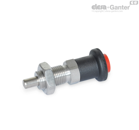 Vijak graničnici GN 414 sa sigurnosnom funkcijom koriste se za sprečavanje slučajnog, nepromišljenog uvlačenja klipa za blokiranje. U tu svrhu, postojeći klip za blokiranje je zaključan i može se otključati za povlačenje samo aksijalnim pritiskom na crveno, sigurnosno pritisno dugme.
