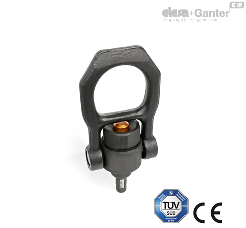 Okov se može okretati za 180°, rotirati u svim pravcima i uvek se poravnati u pravcu povlačenja kada se podigne, bez okretanja čivije. Kao rezultat toga, potporni vijak sa navojem nije izvrnut iz navoja i radni predmet se može bezbedno podići. Sigurnosna šipka štiti dugme za aktiviranje od nenamernog aktiviranja.