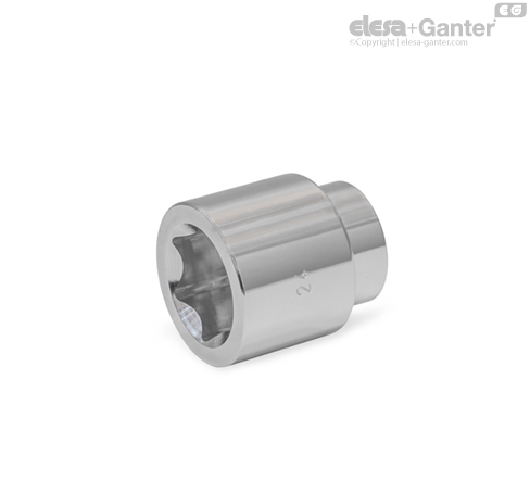 Umetak nasadnog ključa GN 3124 se koriste za montiranje Hygienic Design normiranih elemenata navedenih u tabeli. Uz kombinaciju aluminijuma kao materijala koji se koristi, zaobljena šestostrana geometrija površina ključa prenosi obrtni moment na glavu vijka bez oštećenja.