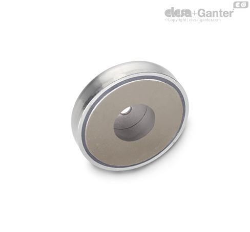 Magneti od nerđajućeg čelika GN 50.45 u kombinaciji sa kućištem od nerđajućeg čelika i plastičnim prstenom / izolacionim prstenom čine sistem koji štiti i pojačava magnet i optimalno preusmerava magnetni tok na površinu prianjanja.