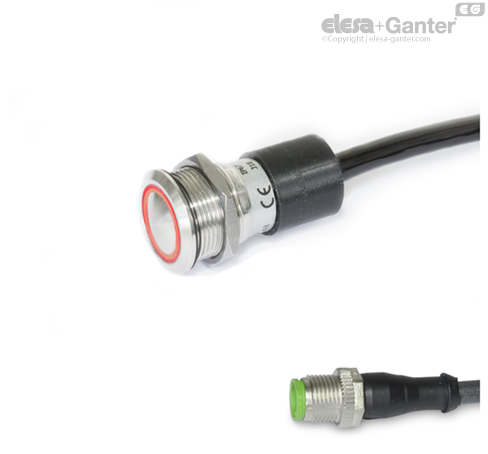 U zavisnosti od polariteta priključaka 1 i 2 LED svetla, integrisano prstenasto LED osvetljenje svetli crvenom ili zelenom bojom, nezavisno od aktiviranja tastera.