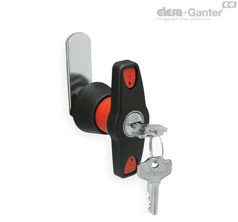 Bravica se najpre otključava (slika 1). Da biste mogli da okrenete T-ručku, potrebno je da aktivirate crveni sigurnosni klip (slika 2). Kada se bravica zatvori (slika 3), sigurnosni klip se automatski ponovo zabravljuje (slika 4).
