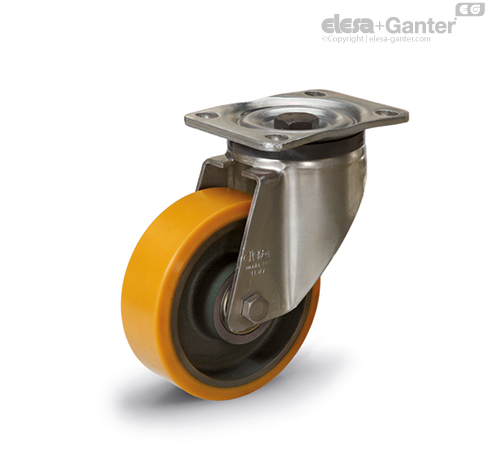 Pocinkovani čelični lim u žutoj boji. Dvostruki kuglični ležaj i direktan kontakt između ploče i prstena kugličnog ležaja sa integrisanom čivijom garantuju odličnu upravljivost. Održavanje nije potrebno. Kućište je dizajnirano za nosivost do 7500 N. Zbog velike nosivosti, točkić je pogodan za industrijske primene za teške uslove rada.