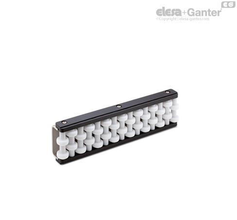Oblikovan sa cilindričnom kontaktnom površinom, od plastike termoplastike (acetalna smola), beli.