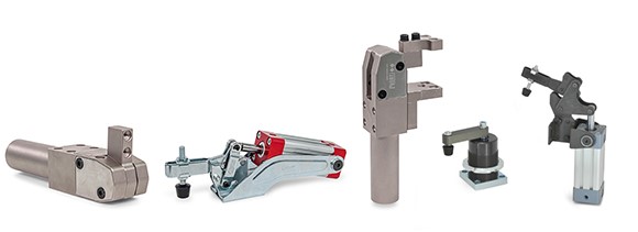 Tvrtka Elesa+Ganter nudi velik izbor pneumatskih, snažnih i zakretnih stezaljki. One se prije svega razlikuju po principu stezanja, veličini ugradnje, udobnosti pri rukovanju i sili zadržavanja. Pneumatske brze stezaljke: ove stezaljke tehnički su identične ručnim brzim stezaljkama. Mehanizam stezanja aktivira se pneumatskim cilindrom. Snažne stezaljke: ove pneumatske stezaljke odlikuju se velikom silom stezanja i kompaktnim dimenzijama. Zakretne stezaljke: ove pneumatske stezaljke upotrebljavaju se kada mjesto stezanja mora biti pristupačno radi umetanja i vađenja obratka. Postupak stezanja podijeljen je na zakretanje zakretnog kraka i linearni hod stezanja. |